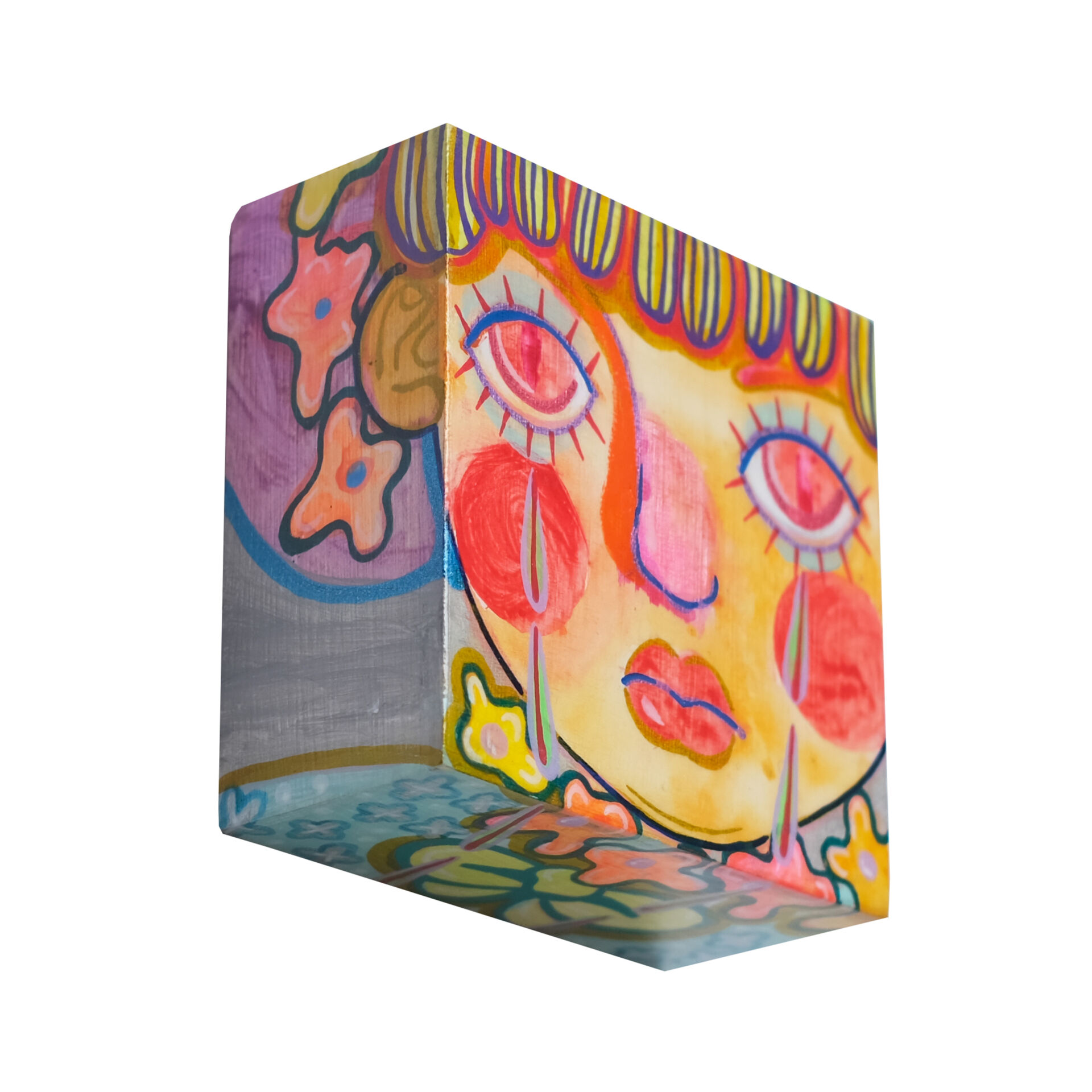 The artist is asking profound questions about growing up in this series - is a child's world really only candy-coloured? Is childhood always equated with carefree and innocence? Children long to grow up quickly, dreaming of being free from their parents' nagging and endless homework, and fantasizing about the freedom to travel the world when they grow up. They cry and rebel along the way, and so they mature, living in their own ‘little world’ with new worries. They try to imitate adults, but seem to forget that every adult was once a child. The artist, who spent two years creating 1,001 paintings, drew inspiration from the ‘Thousand and One Nights’ stories that accompanied her childhood, and felt the sincerity, kindness and endless curiosity about the world in them. In her creations, she uses a childlike little girl as a representative, who is like a mirror reflecting the artist's imagination of her true self. We can be imperfect, just like each of the children in the artist's work, who all shed tears like candy. At the end of the series, the little girl in the 1001st painting finally smiles as she embraces her imperfections. The artist hopes that everyone can find their childhood selves in these works, open their hearts in joy and happiness, accepting themselves and all the beauty and imperfections in life as we grow together.