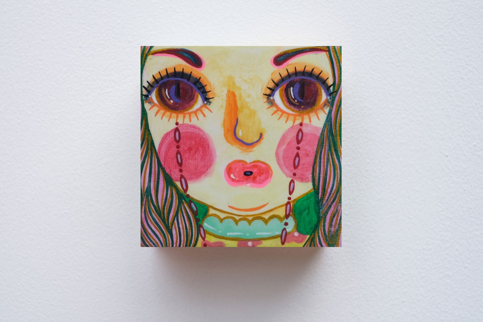 The artist is asking profound questions about growing up in this series - is a child's world really only candy-coloured? Is childhood always equated with carefree and innocence? Children long to grow up quickly, dreaming of being free from their parents' nagging and endless homework, and fantasizing about the freedom to travel the world when they grow up. They cry and rebel along the way, and so they mature, living in their own ‘little world’ with new worries. They try to imitate adults, but seem to forget that every adult was once a child. The artist, who spent two years creating 1,001 paintings, drew inspiration from the ‘Thousand and One Nights’ stories that accompanied her childhood, and felt the sincerity, kindness and endless curiosity about the world in them. In her creations, she uses a childlike little girl as a representative, who is like a mirror reflecting the artist's imagination of her true self. We can be imperfect, just like each of the children in the artist's work, who all shed tears like candy. At the end of the series, the little girl in the 1001st painting finally smiles as she embraces her imperfections. The artist hopes that everyone can find their childhood selves in these works, open their hearts in joy and happiness, accepting themselves and all the beauty and imperfections in life as we grow together.