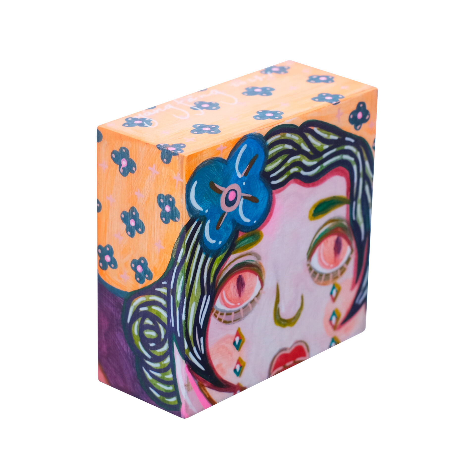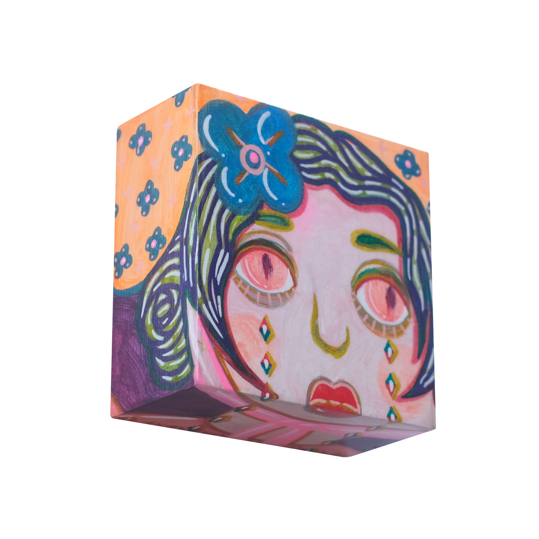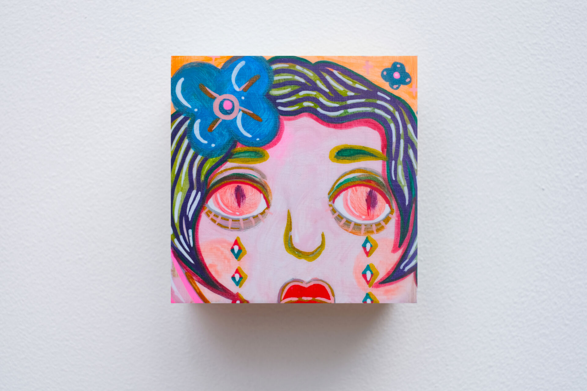 The artist is asking profound questions about growing up in this series - is a child's world really only candy-coloured? Is childhood always equated with carefree and innocence? Children long to grow up quickly, dreaming of being free from their parents' nagging and endless homework, and fantasizing about the freedom to travel the world when they grow up. They cry and rebel along the way, and so they mature, living in their own ‘little world’ with new worries. They try to imitate adults, but seem to forget that every adult was once a child. The artist, who spent two years creating 1,001 paintings, drew inspiration from the ‘Thousand and One Nights’ stories that accompanied her childhood, and felt the sincerity, kindness and endless curiosity about the world in them. In her creations, she uses a childlike little girl as a representative, who is like a mirror reflecting the artist's imagination of her true self. We can be imperfect, just like each of the children in the artist's work, who all shed tears like candy. At the end of the series, the little girl in the 1001st painting finally smiles as she embraces her imperfections. The artist hopes that everyone can find their childhood selves in these works, open their hearts in joy and happiness, accepting themselves and all the beauty and imperfections in life as we grow together.