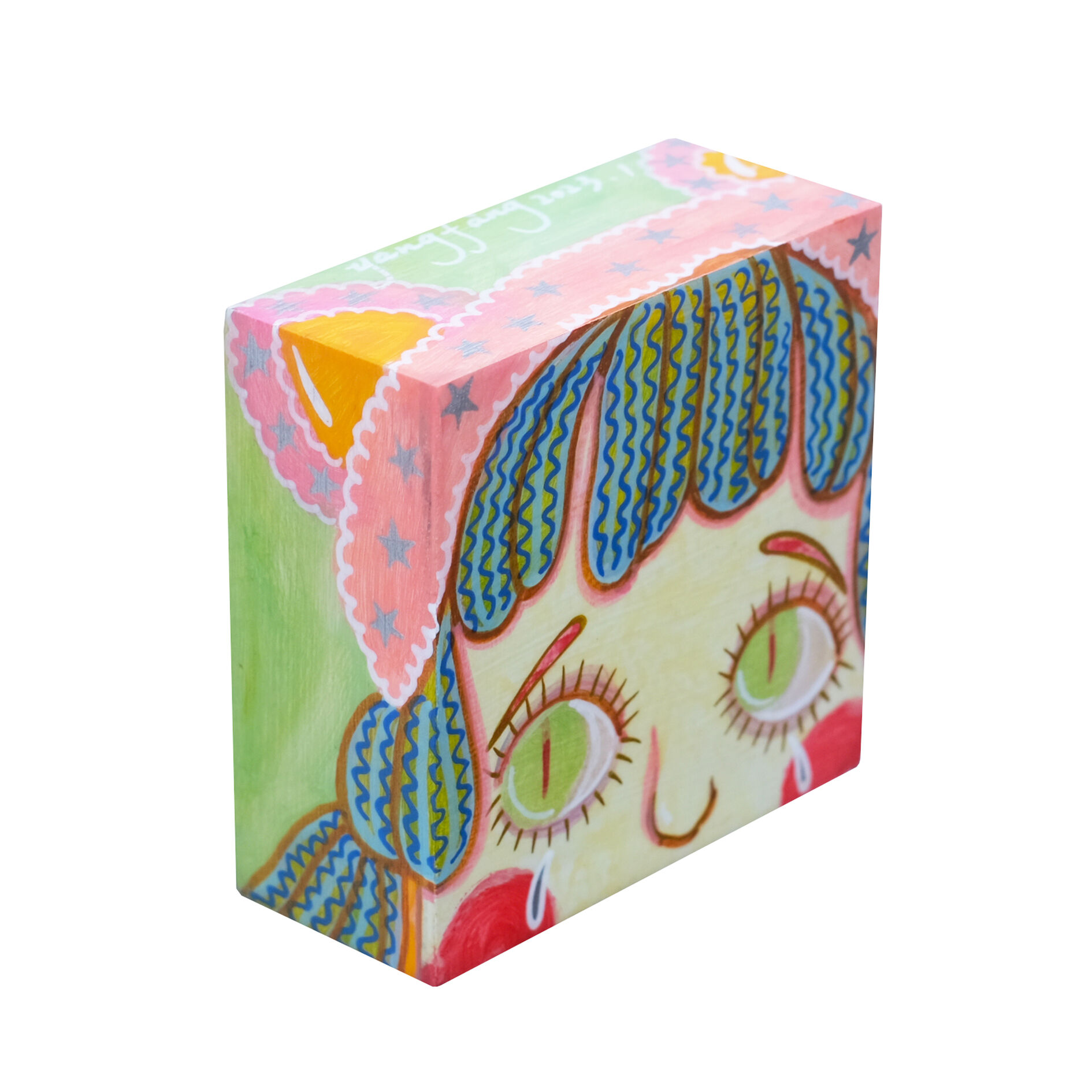The artist is asking profound questions about growing up in this series - is a child's world really only candy-coloured? Is childhood always equated with carefree and innocence? Children long to grow up quickly, dreaming of being free from their parents' nagging and endless homework, and fantasizing about the freedom to travel the world when they grow up. They cry and rebel along the way, and so they mature, living in their own ‘little world’ with new worries. They try to imitate adults, but seem to forget that every adult was once a child. The artist, who spent two years creating 1,001 paintings, drew inspiration from the ‘Thousand and One Nights’ stories that accompanied her childhood, and felt the sincerity, kindness and endless curiosity about the world in them. In her creations, she uses a childlike little girl as a representative, who is like a mirror reflecting the artist's imagination of her true self. We can be imperfect, just like each of the children in the artist's work, who all shed tears like candy. At the end of the series, the little girl in the 1001st painting finally smiles as she embraces her imperfections. The artist hopes that everyone can find their childhood selves in these works, open their hearts in joy and happiness, accepting themselves and all the beauty and imperfections in life as we grow together.